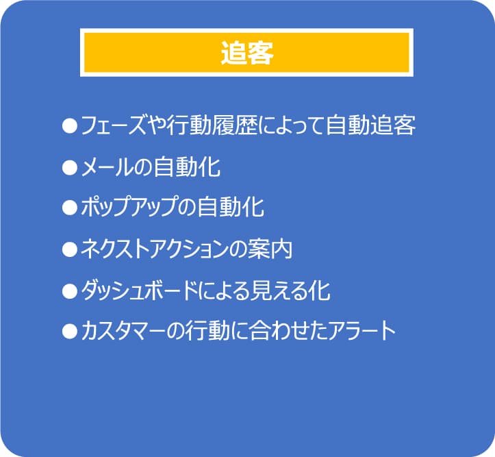 関心度の高い見込み顧客の可視化や、営業プロセスの自動化による効率的な活動ができる他、